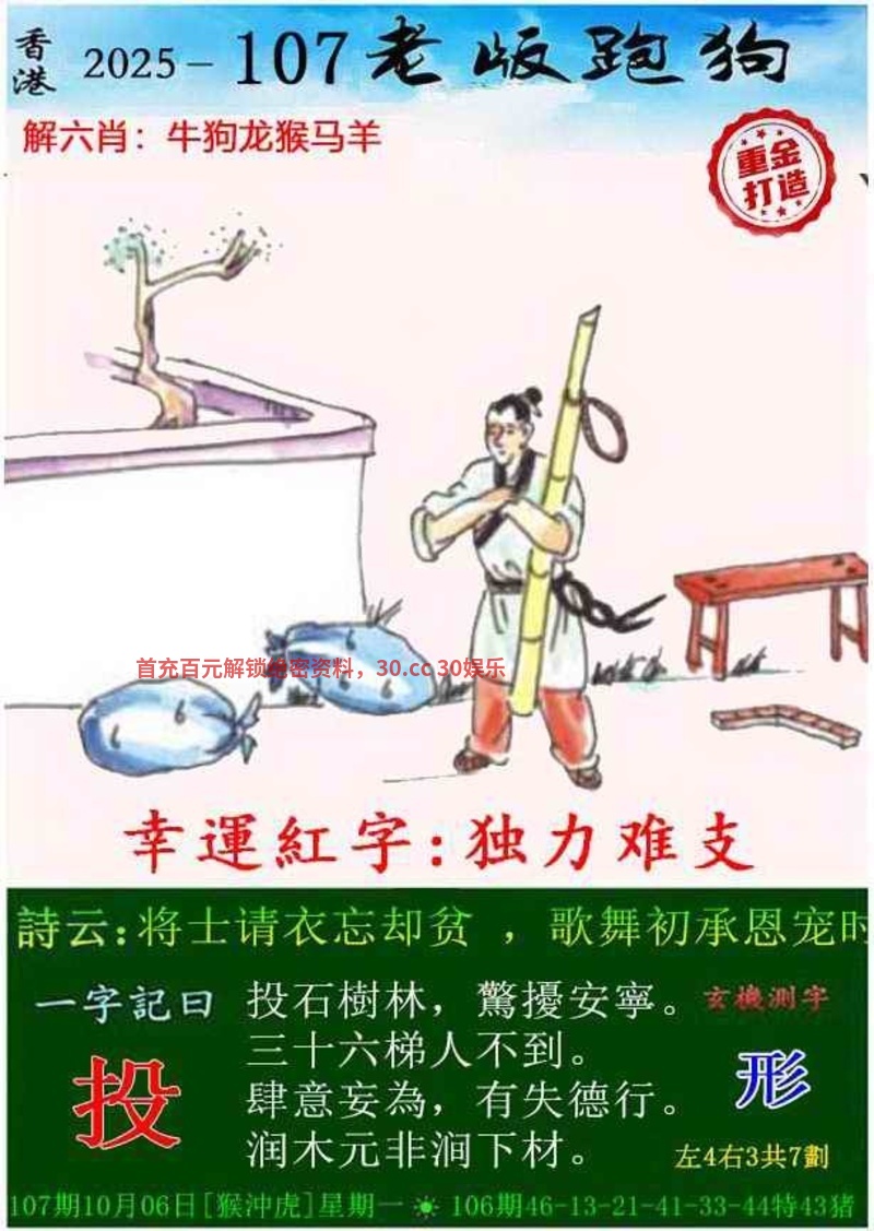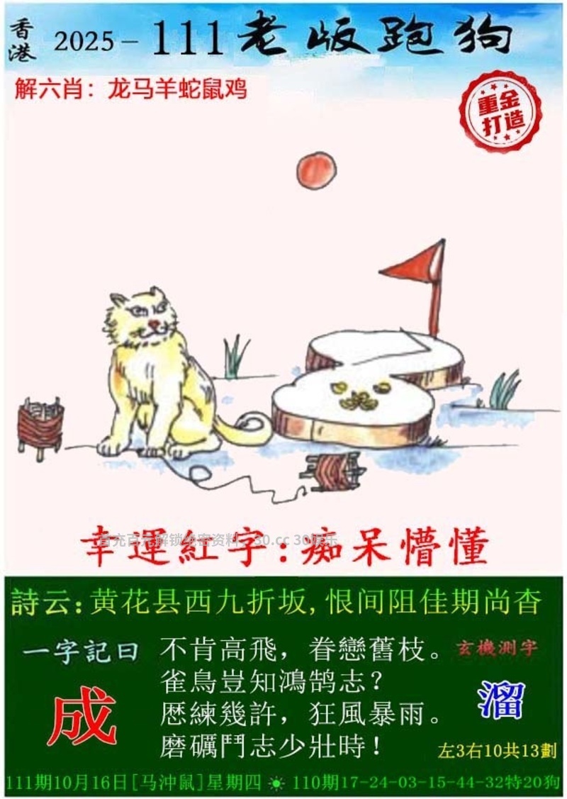 111期:今期猪牛狗看定,特碼旺小和单出开马12准